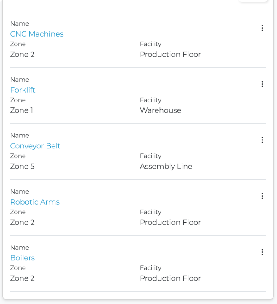 Assets package data points and store information within each zone. From specialized equipment to general-purpose assets, streamline monitoring and data organization for maximum efficiency.