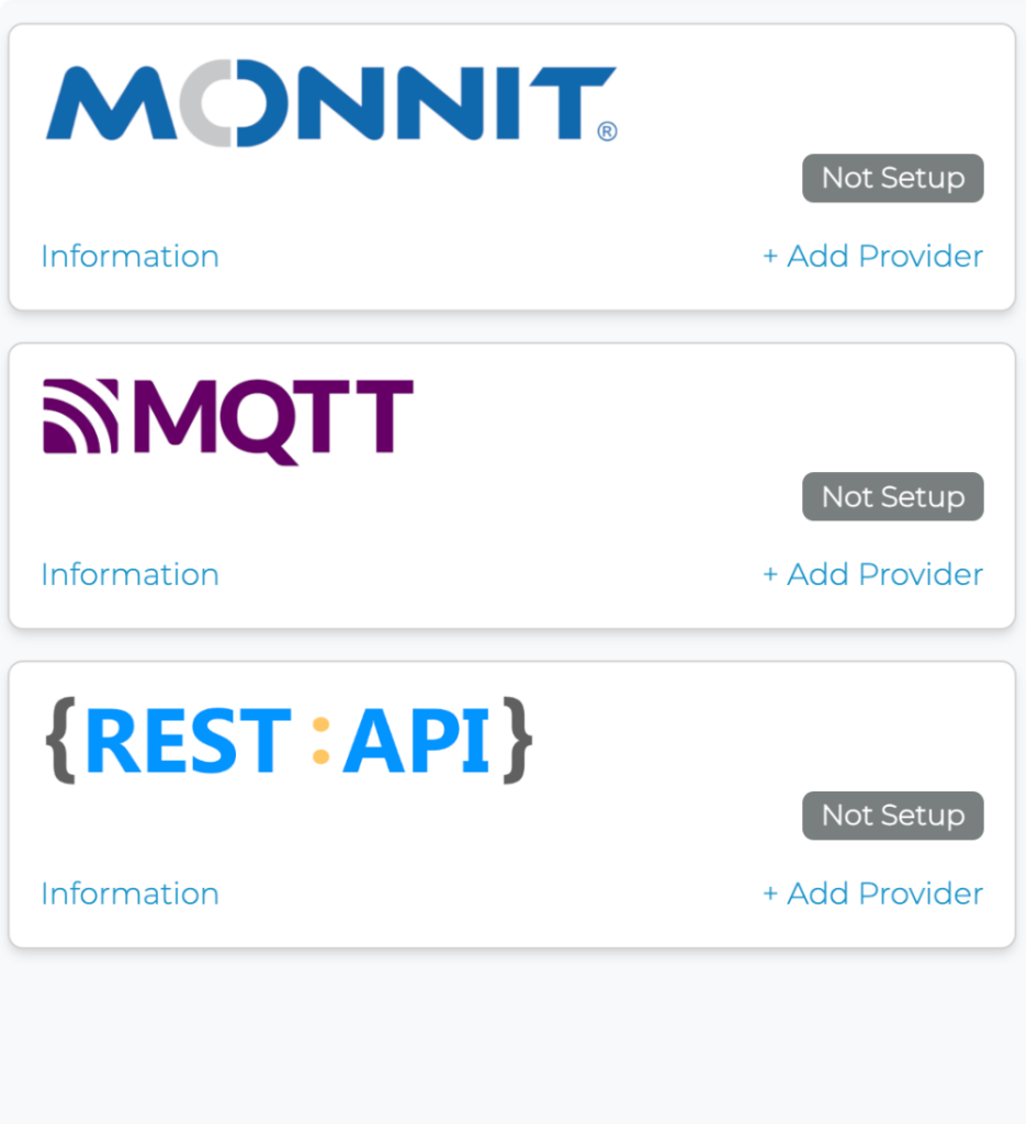 Choose from a variety of data providers like Monnit, MQTT, and Rest to connect your equipment seamlessly. Integrate with the platform for real-time data collection and monitoring.